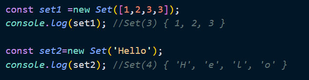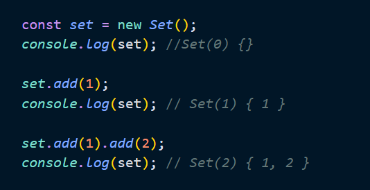 Set 생성자 함수는 이터러블을 인수로 전달받아 Set 객체를 생성한다. 이때 이터러블의 중복된 값은 Set 객체에 요소로 저장되지 않는다.