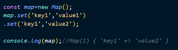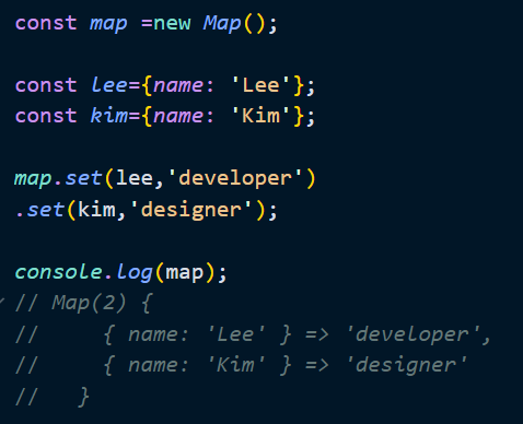 Map 객체에는 중복된 키를 갖는 요소가 존재할 수 없기 때문에 중복된 키를 갖는 요소를 추가하면 값이 덮어써진다.