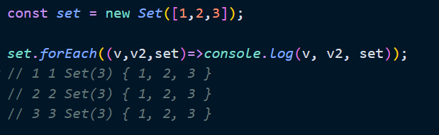 - 세 번째 인수: 현재 순회중인 set 객체 자체